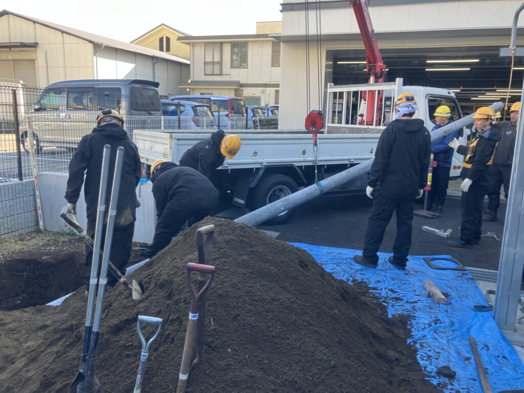TEMS平塚SCの敷地内にて信号機柱の設置工事を実施しました。